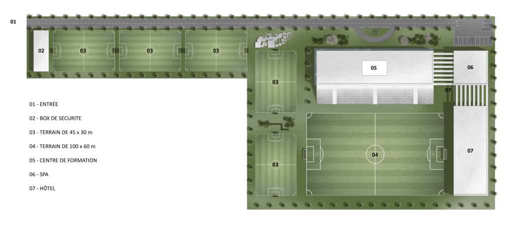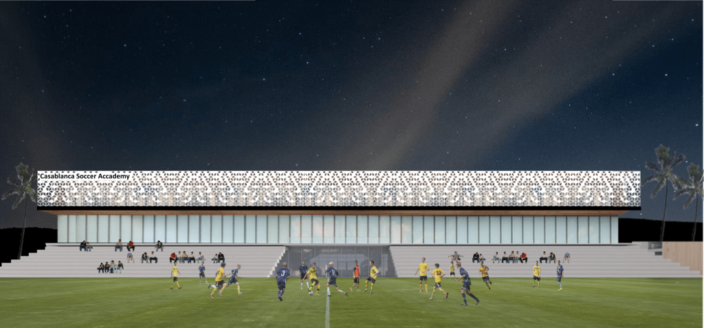 28 Sep 20205 Juin 2022 Centre De Formation Casablanca Le projet est un centre de Formation de Football de haut Niveau à Casablanca. VUE DU TERRAIN PRINCIPAL VUE AXONOMETRIQUE PLAN DE MASSE GENESE Partager : Cliquer pour partager sur X(ouvre dans une nouvelle fenêtre) X Cliquez pour partager sur Facebook(ouvre dans une nouvelle fenêtre) Facebook J’aime chargement… Similaire